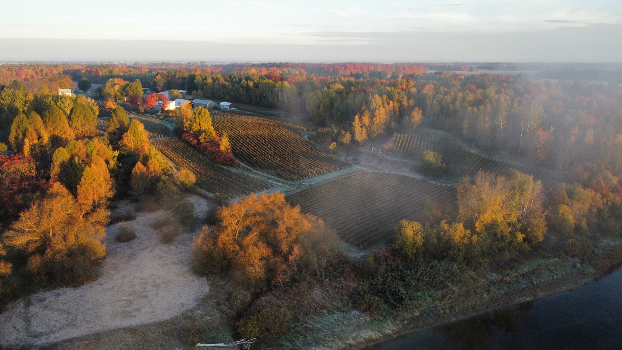 Il y a d’abord eu la terre, cachée au creux des vallons en bordure de la Yamaska. Était-ce nous qui l’avions trouvée, où elle qui avait toujours su qu’on y viendrait? C’est comme si elle pouvait n'avoir d'autre destinée que devenir vignoble. Ses pentes orientées de façon à capturer chacun des rayons du soleil, ses sols variés, vierges des ravages de l’agriculture moderne. Depuis 2013, nous avons planté et cultivé 3 hectares de vignes. Surtout, nous avons tenté de comprendre l’écosystème duquel nous faisons maintenant partie. Faire le choix de l’agriculture, c’est accepter l’idée que nous perturbons le fragile équilibre de la nature. Cela requiert doigté, résilience et humilité.